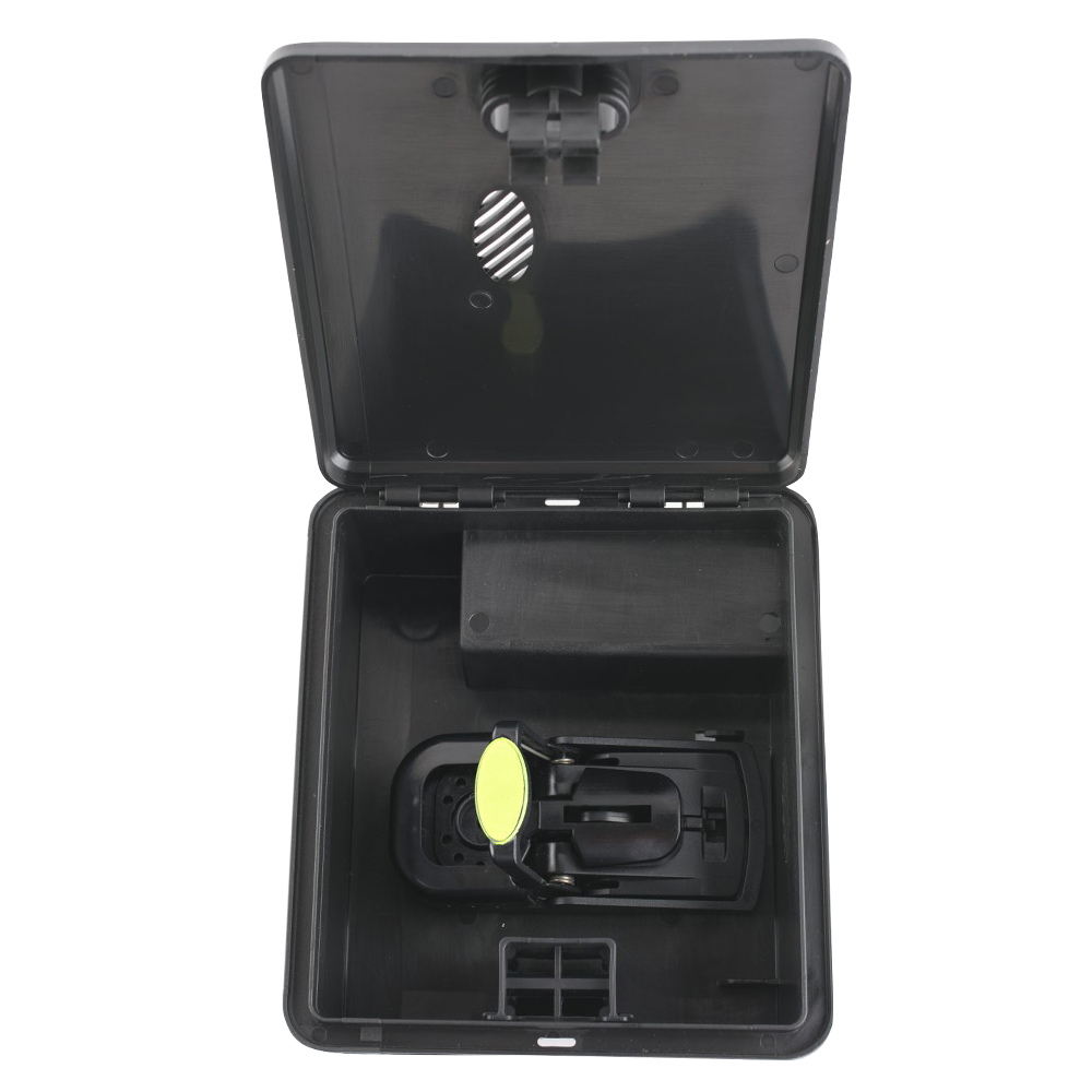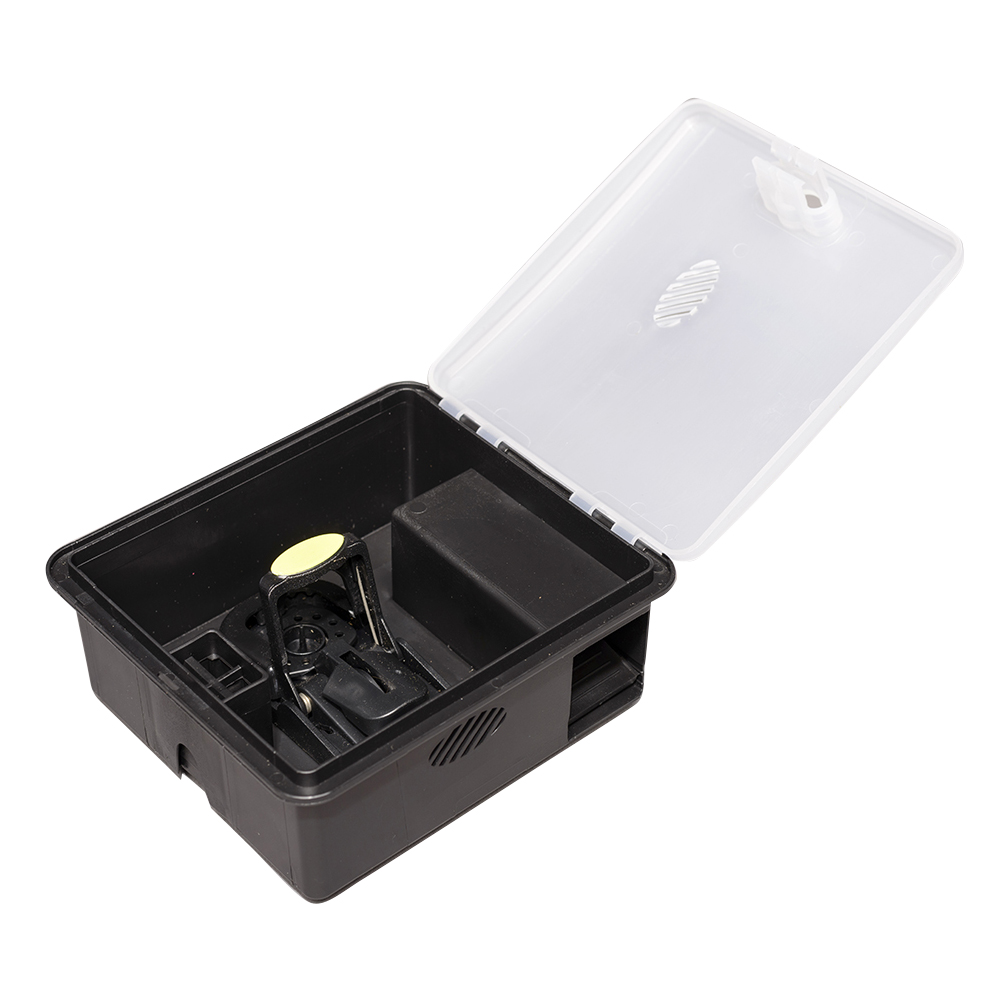 Műanyag átlátszó fedelű élve fogó egércsapda. Az egércsapda kulccal zárható, időjárás- és ütésálló. A billenőnyilásnak köszönhetően az egér csak be tud menni,de ki már nem tud jönni. A doboz stabilan áll, ami egy ilyen ládánál kiemelten fontos. Helyezhető bele méreg, ragasztólap, de önmagában is használható. Utóbbi esetekben csalétek elhelyezése szükséges.